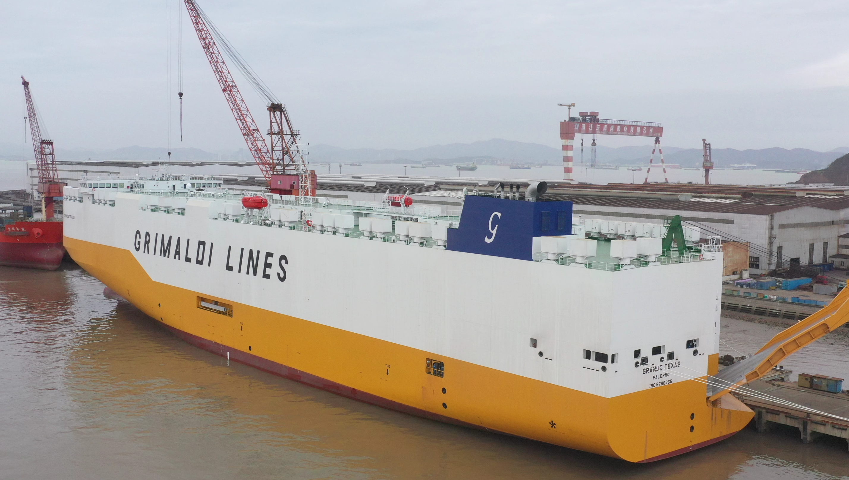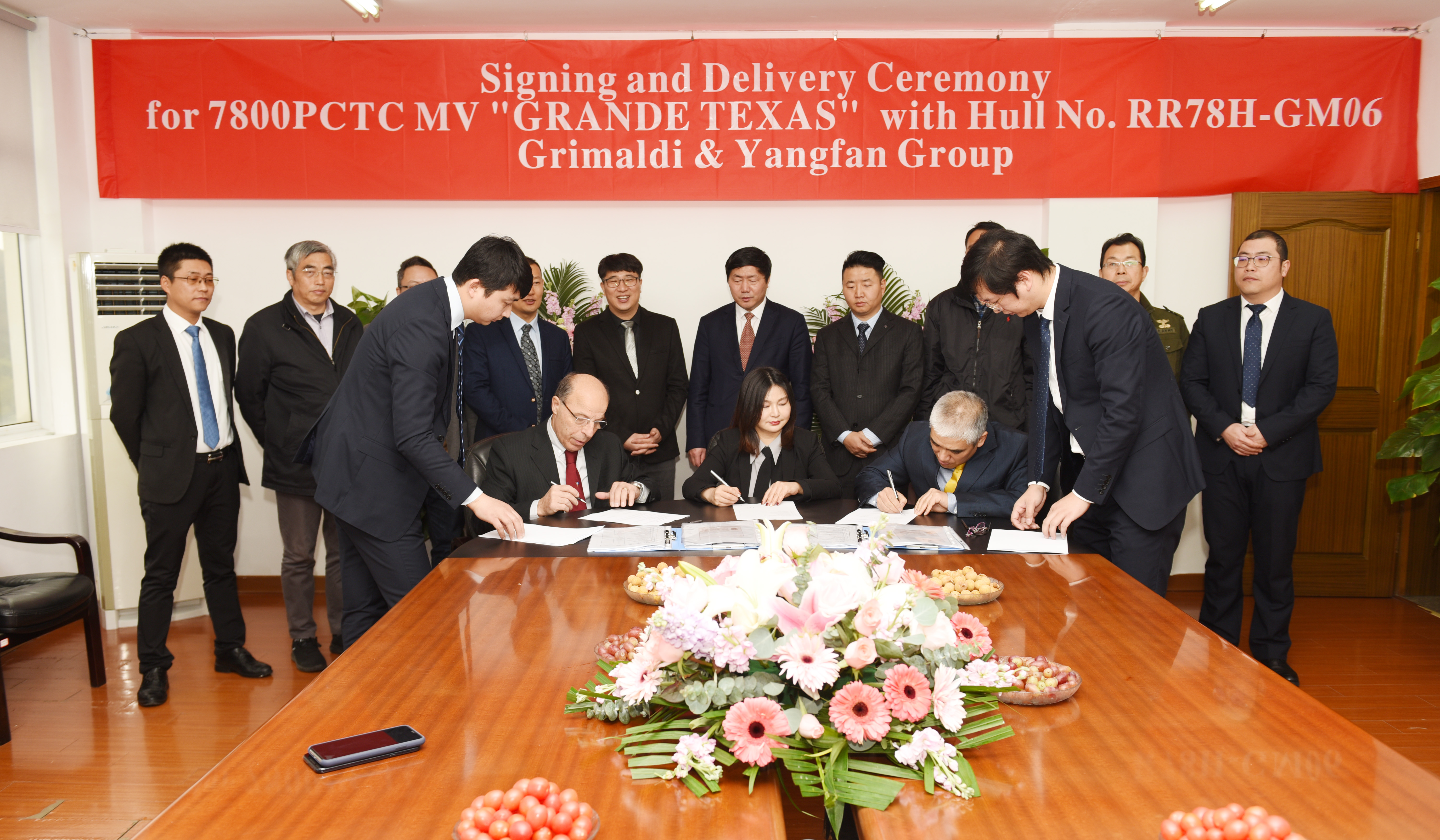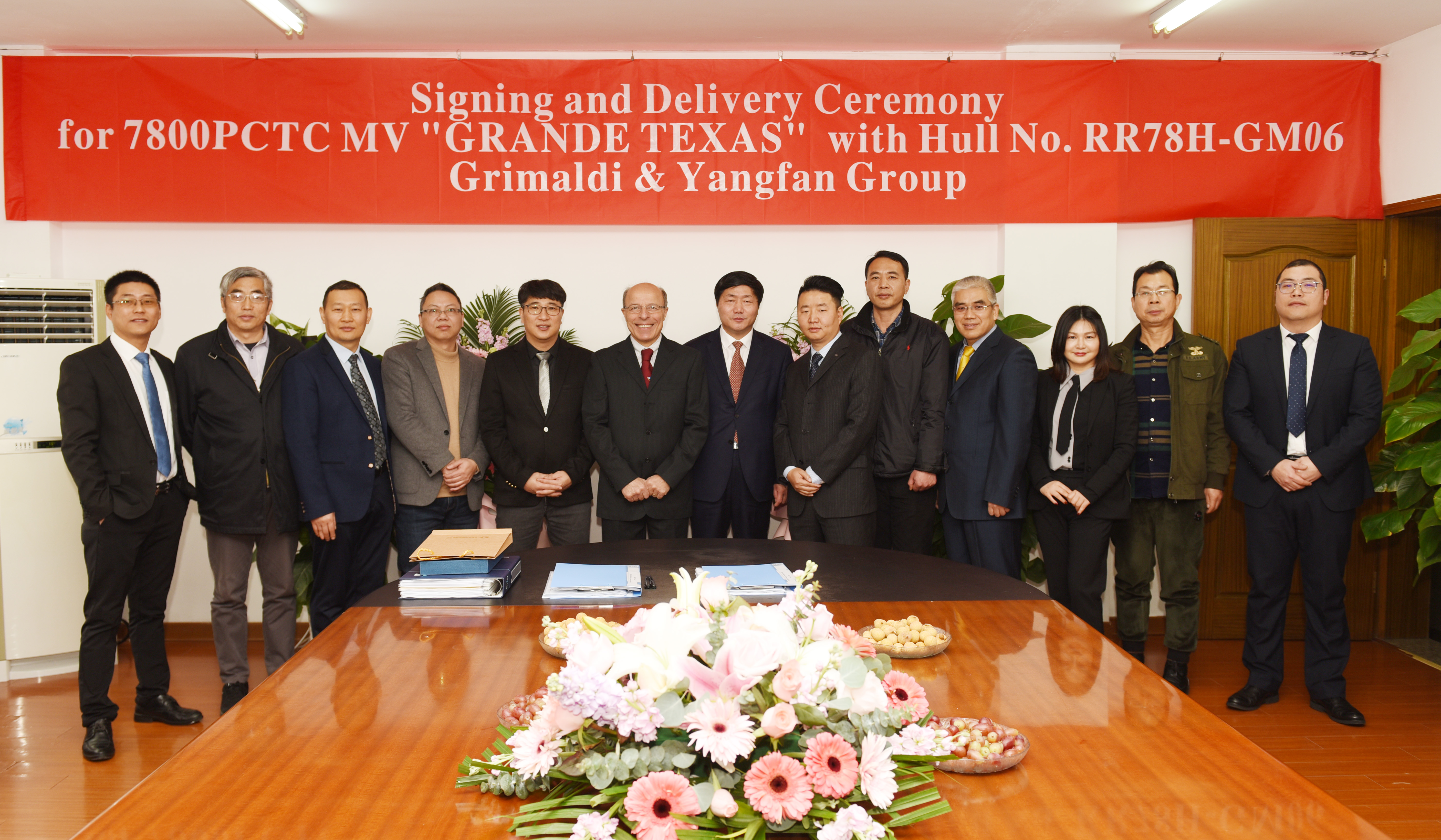 2021年1月26日,由揚帆集團(tuán)股份有限公司下屬全資子公司——浙江東海岸船業(yè)有限公司為意大利船東Grimaldi集團(tuán)公司承建的7800車位汽車滾裝船(PCTC)系列船“GRANDE TEXAS"”(船號GM06)正式簽字交付。