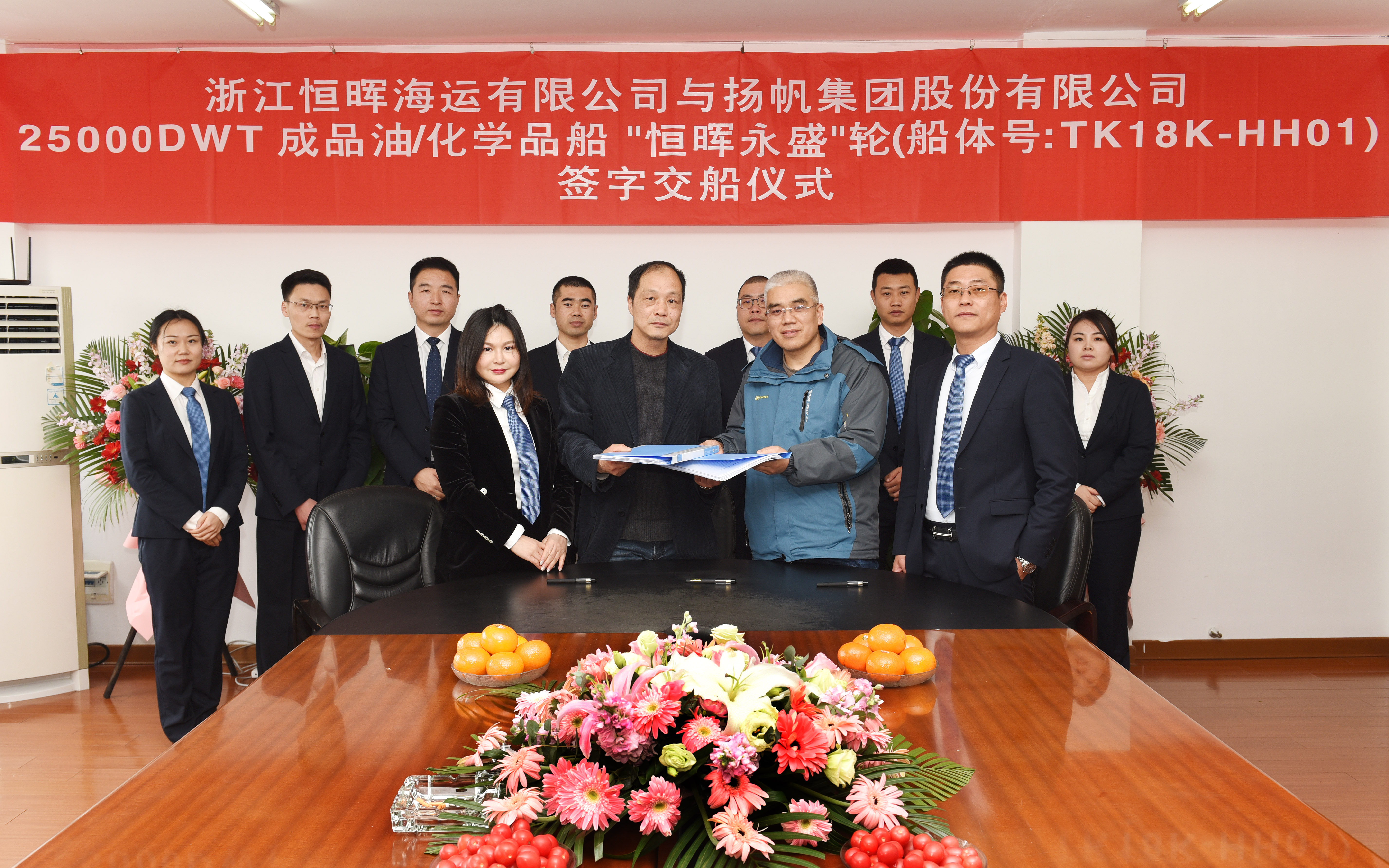 2021年3月24日,由揚(yáng)帆集團(tuán)股份有限公司下屬全資子公司浙江東海岸船業(yè)有限公司為國(guó)內(nèi)船東浙江恒暉海運(yùn)有限公司承建的1艘25000噸化學(xué)品油船“恒暉永盛”號(hào)正式簽字交付。