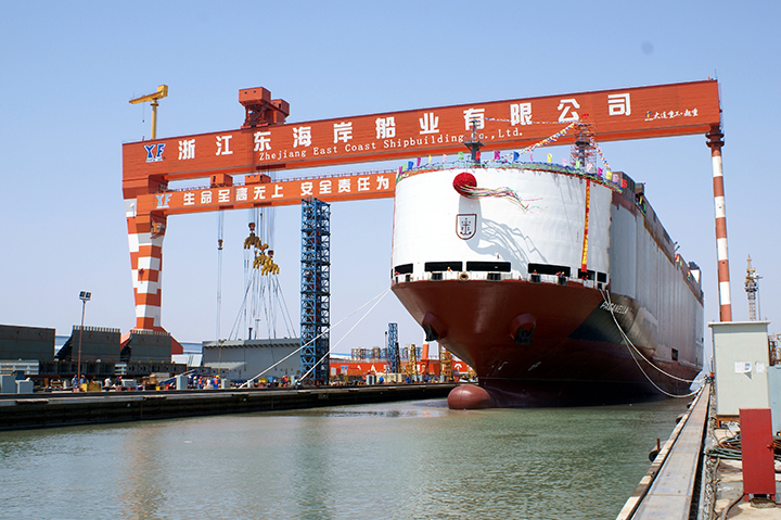 浙江東海岸船業(yè)有限公司位于浙江省舟山市螞蟻島,具有豐富的深水岸線資源和優(yōu)越的自然條件,總占地面積79萬平方米。船廠設(shè)施設(shè)備先進(jìn),布局合理,配備中型船塢、舾裝碼頭各一座,主要設(shè)備為600噸門座式吊機(jī)及二次涂裝處理設(shè)備等,具備20萬噸級以下各類船舶產(chǎn)品的建造能力,年造船能力100萬載重噸以上。